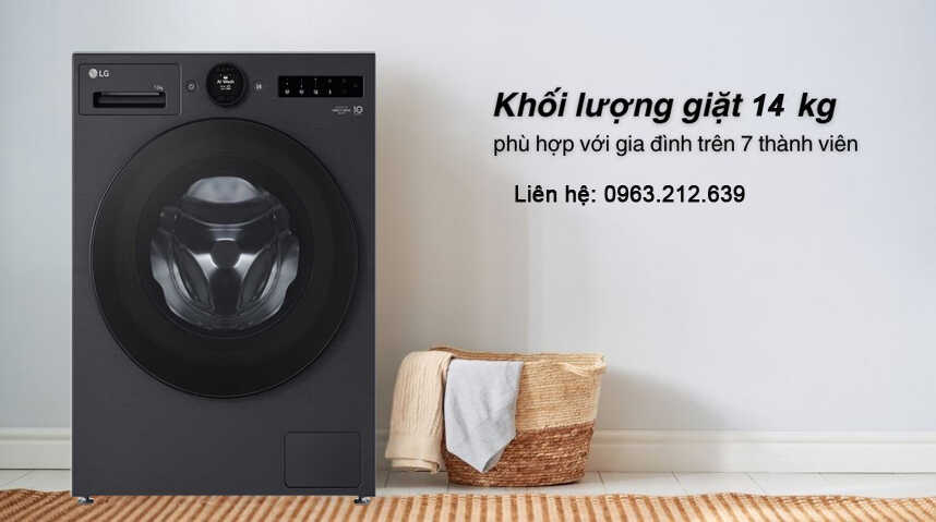 - Máy giặt LG FX1414S3KA khối lượng 14 kg là lựa chọn lý tưởng cho gia đình đông người từ 7 thành viên trở lên. Máy đáp ứng nhu cầu giặt lớn, hiệu quả và tiện lợi, giúp tiết kiệm thời gian, công sức và mang lại trải nghiệm giặt giũ hiện đại, thoải mái cho cả nhà.