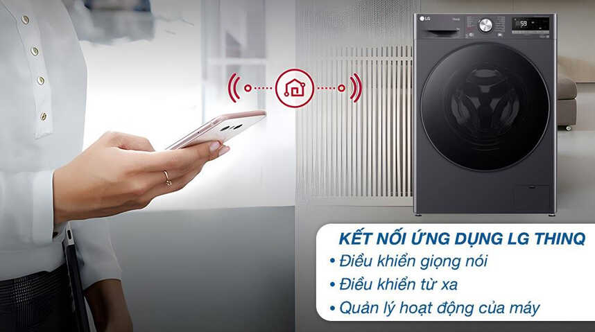 - Khả năng kết nối Wi-Fi và điều khiển từ xa qua ứng dụng LG ThinQ, cho phép người dùng giám sát tình trạng giặt, chọn chương trình mới và nhận thông báo khi hoàn tất. Tính năng này mang lại trải nghiệm hiện đại, tiện lợi, giúp quản lý giặt giũ linh hoạt ngay cả khi không ở nhà.