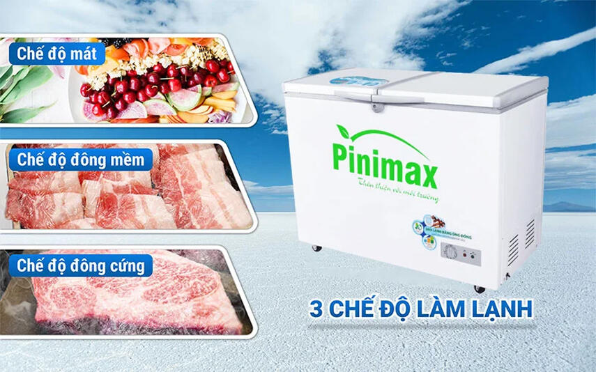 - Tủ đông dàn đồng Pinimax PNM-39AF3 được trang bị công nghệ làm lạnh 360 độ, giúp luồng khí lạnh lan tỏa đều khắp không gian bên trong tủ. Nhờ đó, thực phẩm được làm lạnh nhanh, đồng đều và giữ được độ tươi ngon lâu hơn, hạn chế tình trạng đóng đá cục bộ hay hư hỏng do lạnh không đều.