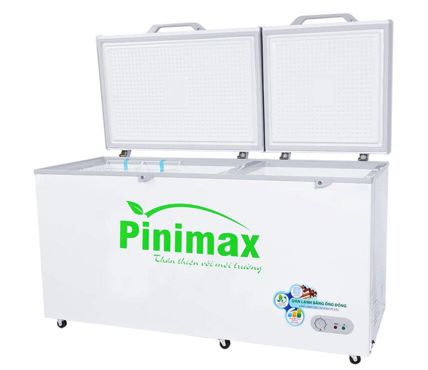 Tủ đông Pinimax PNM-69AF dung tích 530 lít, thuộc dòng tủ 1 ngăn đông 2 cánh mở vali, dàn lạnh đồng bền bỉ, làm lạnh nhanh đến -18℃. Sản phẩm phù hợp với nhu cầu trữ đông vừa phải tại cửa hàng, nhà hàng, siêu thị nhỏ. Thiết kế khóa nắp an toàn, bánh xe chịu lực dễ di chuyển, bảng điều chỉnh nhiệt độ tiện lợi. Sản xuất tại Việt Nam theo tiêu chuẩn công nghệ Nhật Bản, tủ tiết kiệm điện, thân thiện môi trường và dễ vệ sinh.
