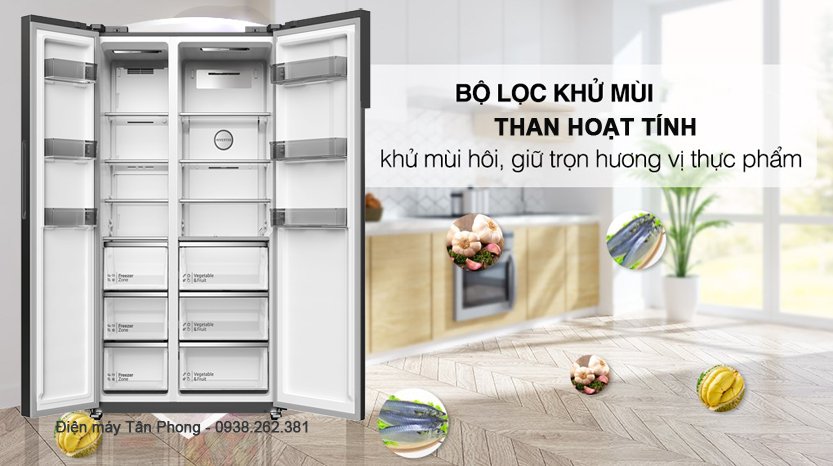 Tủ lạnh Hitachi 525 lít HRSN9552DGBVN được trang bị bộ lọc than hoạt tính giúp kháng khuẩn và khử mùi mạnh mẽ. Hệ thống lọc này loại bỏ hiệu quả mùi hôi khó chịu từ thực phẩm, đồng thời ức chế sự phát triển của vi khuẩn, mang đến không gian lưu trữ trong lành, bảo vệ thực phẩm luôn tươi ngon và an toàn.
