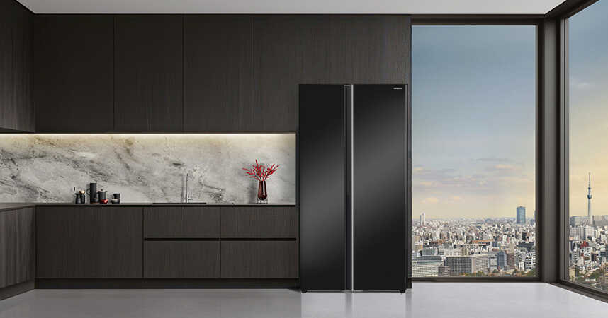 Kiểu tủ Side By Side 2 cửa sang trọng, mặt thép đen