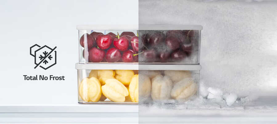 - Làm mát tươi ngon với công nghệ Total No Frost, giúp khí lạnh lưu thông đều khắp tủ lạnh, ngăn ngừa hiện tượng đóng băng và giữ thực phẩm luôn tươi ngon. Với công nghệ này, bạn không cần phải làm tan băng thủ công, tủ lạnh luôn sẵn sàng hoạt động hiệu quả, tiết kiệm thời gian và công sức, mang đến sự tiện lợi tối đa trong quá trình sử dụng.