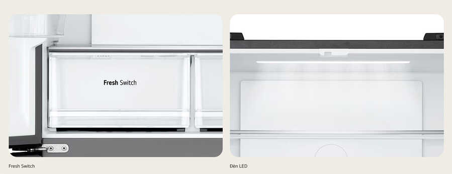 - Điểm đặc biệt của tủ lạnh LG LFB47SVM là ngăn Fresh Switch với 3 chế độ chuyển đổi linh hoạt. Người dùng có thể chọn chế độ phù hợp để bảo quản các loại thực phẩm khác nhau, từ rau củ, thịt cá đến thực phẩm tươi sống. Với khả năng điều chỉnh linh hoạt, ngăn Fresh Switch giúp bảo quản thực phẩm tối ưu hơn so với các ngăn lưu trữ thông thường, giữ cho thực phẩm luôn tươi ngon lâu dài.