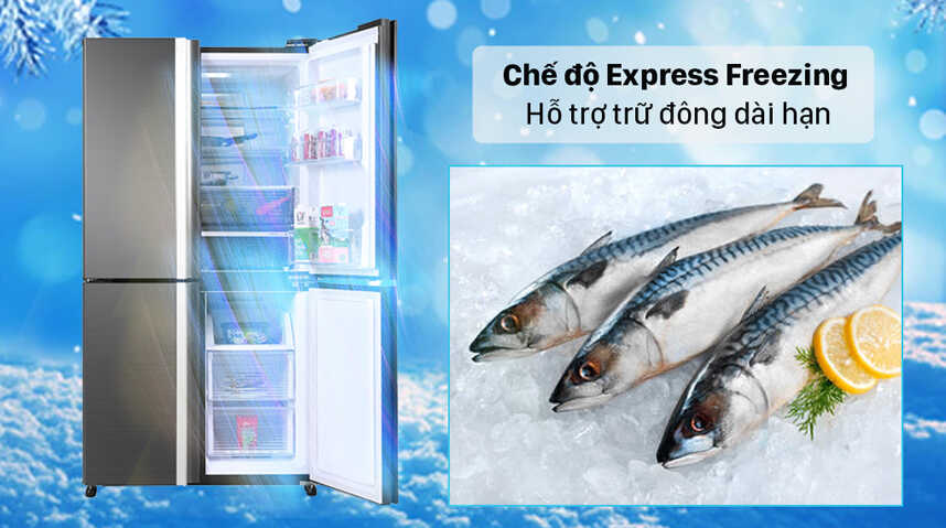 - Chế độ cấp đông sâu Deep Freezing mang đến khả năng làm lạnh mạnh mẽ, giúp duy trì mức nhiệt độ thấp ổn định, tối ưu cho việc trữ đông thực phẩm trong thời gian dài. Nhờ đó, thịt cá, hải sản hay các loại thực phẩm đông lạnh khác vẫn giữ trọn vẹn giá trị dinh dưỡng, hương vị tươi ngon và kết cấu nguyên bản. Đây là giải pháp lý tưởng cho gia đình thường xuyên dự trữ thực phẩm với số lượng lớn.